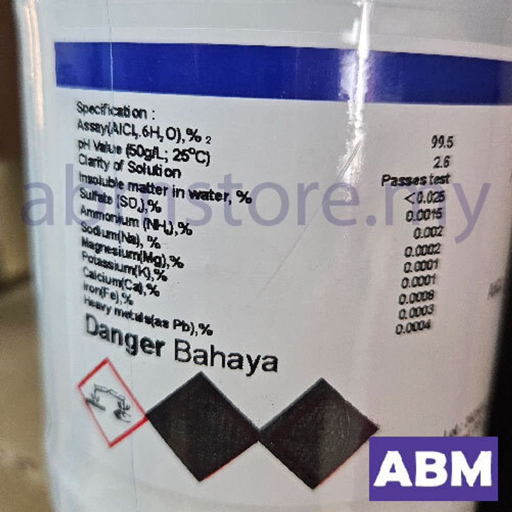 Aluminium Chloride Hexahydrate (6H2O) AR, Bendosen (500g) CAS No 7784-13-6